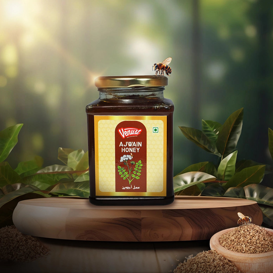 Ajwain honey, made from the nectar of carom (ajwain) flowers, is full of natural health benefits. It combines the goodness of ajwain and honey, making it a perfect choice for a healthy lifestyle.
